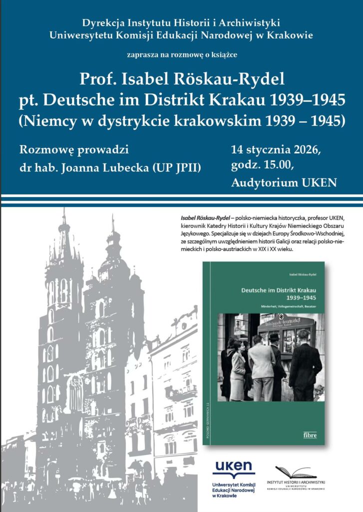 Zaproszenie na dyskusję wokół najnowszej książki dr hab.... Instytut Historii i Archiwistyki Uniwersytetu Komisji Edukacji Narodowej w Krakowie zaprasza na dyskusję wokół najnowszej... 2026.01.09