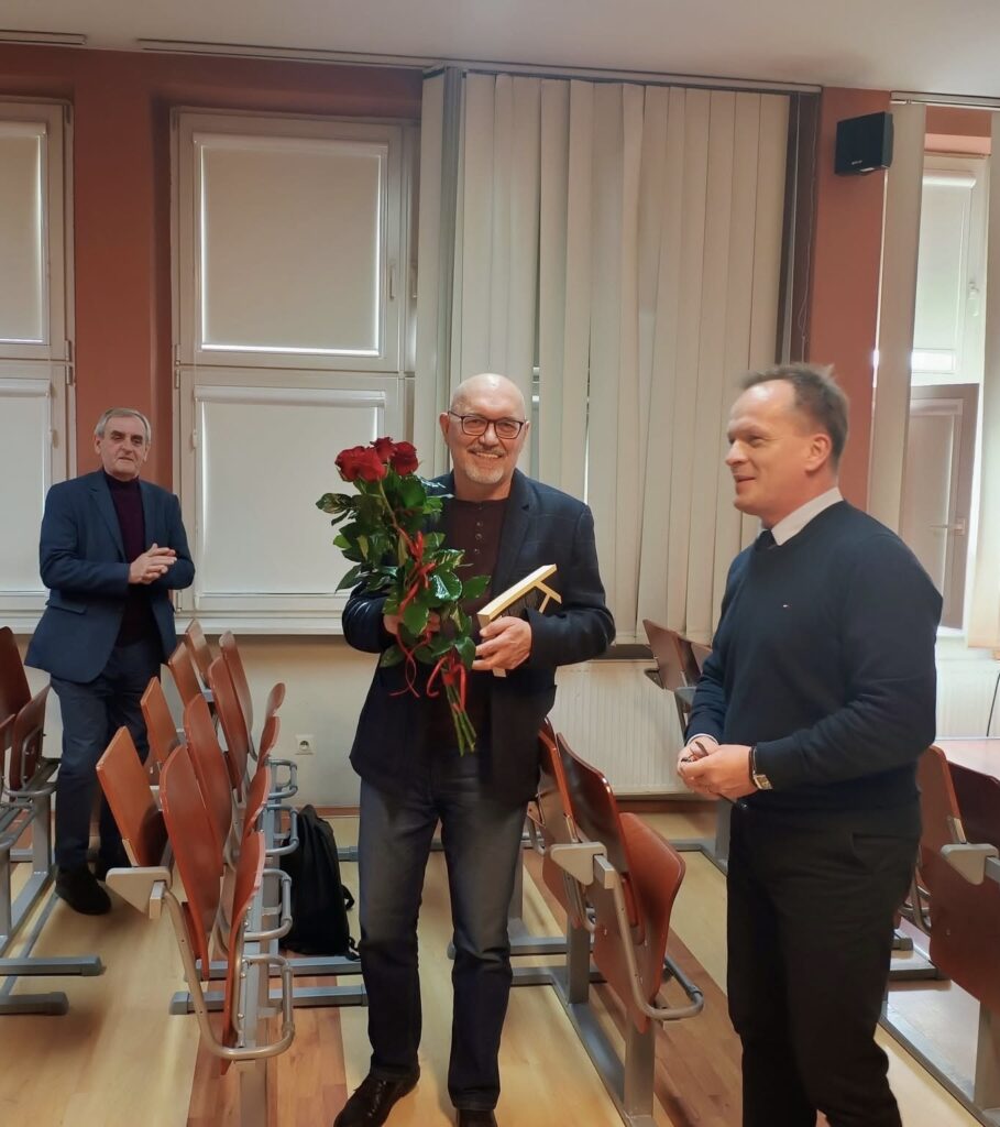 Profesor przez całe zawodowe życie był związany z naszą Uczelnią – jako naukowiec, dydaktyk, promotor i opiekun wielu pokoleń studentów. Jego dorobek, pasja i zaangażowanie na zawsze pozostaną ważną częścią naszej historii. Podczas pożegnania Profesor został uhonorowany gromkimi brawami, które wyrażały ogromne uznanie całej społeczności IFP.