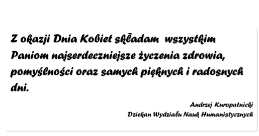 Dzień Kobiet – Życzenia Dziekana Wydziału Nauk Humanistycznych dr. hab. Andrzeja Kuropatnickiego, prof. UKEN 4 marca 2026